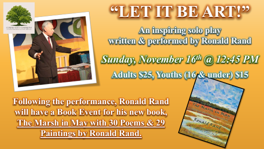 Following the performance, Ronald Rand will have a Book Event for his new book, The Marsh in May with 30 Poems & 29 Paintings by Ronald Rand.
